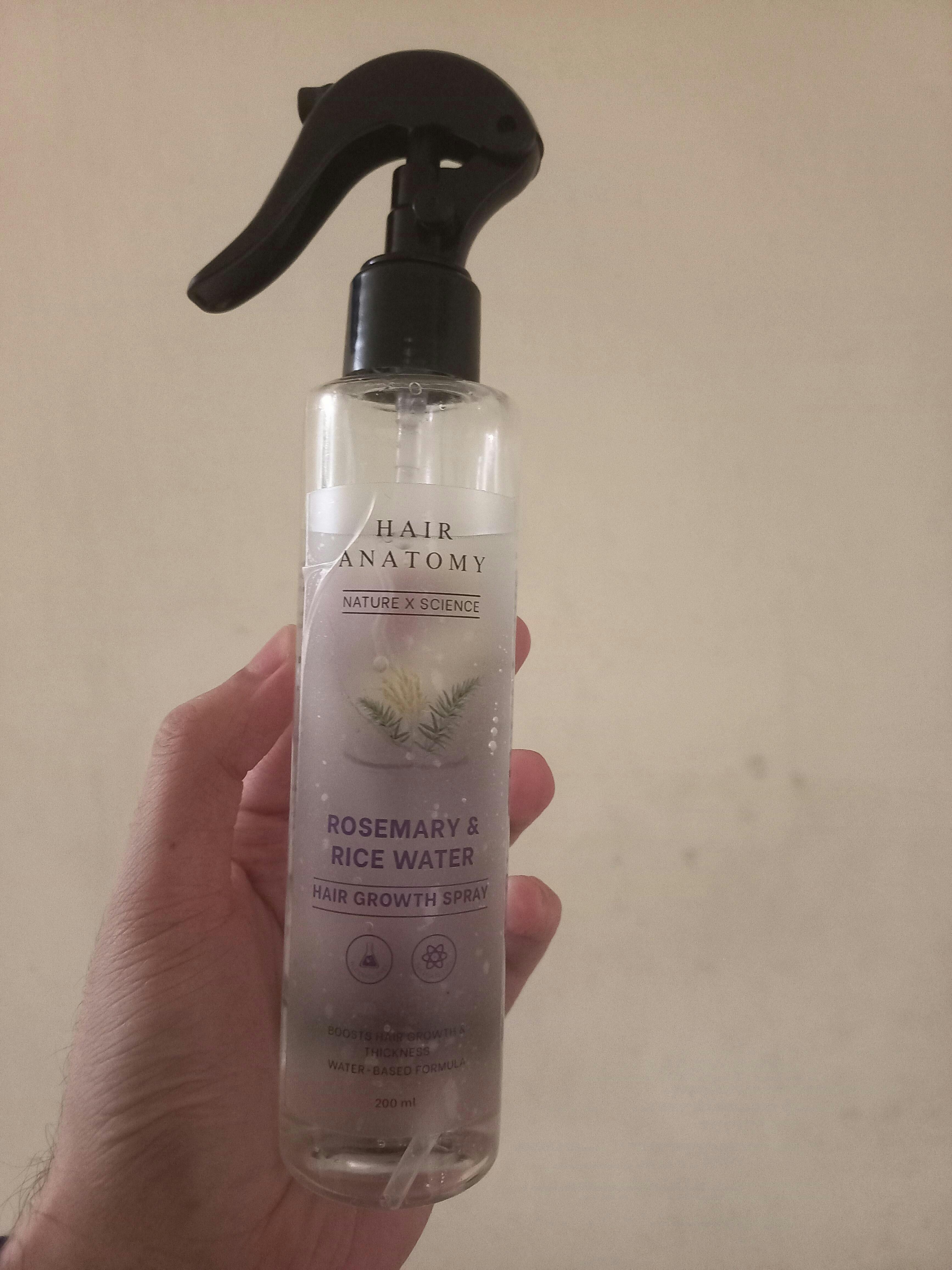 Hair Anatomy Rosemary & Rice Water Hair Growth Spray is a 100% natural, daily-use formula designed to visibly boost hair growth, reduce hair fall, and enhance hair thickness. Powered by nature and backed by science, this lightweight, non-greasy hair spray absorbs effortlessly into the scalp without clogging follicles or leaving behind residue.
